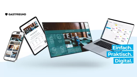 Die Software von Gastfreund unterstützt Gastgeber dabei, Gäste umfassend zu informieren, den Service zu optimieren und zusätzliche Umsätze zu generieren. Im Mittelpunkt steht die digitale Gästemappe – als App und Webversion – die den Gästen alle relevanten Informationen direkt auf dem Smartphone oder Tablet bereitstellt. Funktionen wie Chat und digitale Anfrageformulare schaffen interaktive Kontaktpunkte und sorgen für mehr Nähe zum Gast. Für Unterkünfte, die ihre Marke stärker betonen möchten, realisiert Gastfreund auf Wunsch eine individuelle App im eigenen Design. Noch mehr Sichtbarkeit für Inhalte und Angebote bieten der Infokanal auf dem TV sowie die Hotelzeitung – gedruckt oder als E-Paper. Ergänzend setzen digitale Infopoints gezielte Akzente im Haus und rücken die digitale Gästemappe zusätzlich in den Fokus.
